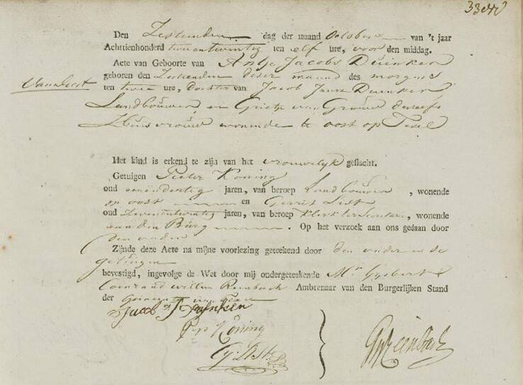 Geboorteakte Lambertus de Ridder 29-01-1840