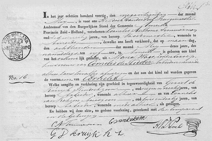 Geboorteakte Cornelis de Ridder 03-07-1812