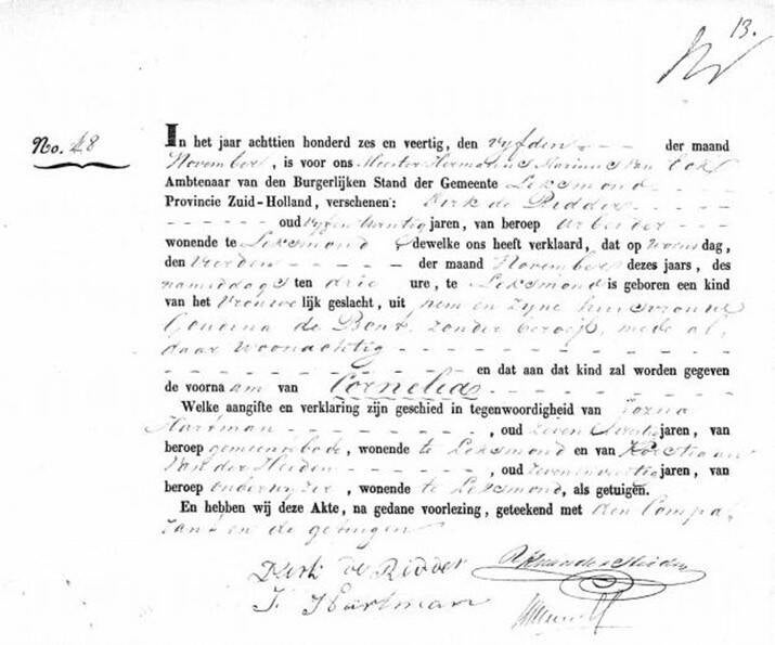 Geboorteakte Cornelia de Ridder 05-11-1846