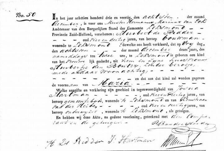 Geboorteakte Hendrik de Ridder 09-10-1853