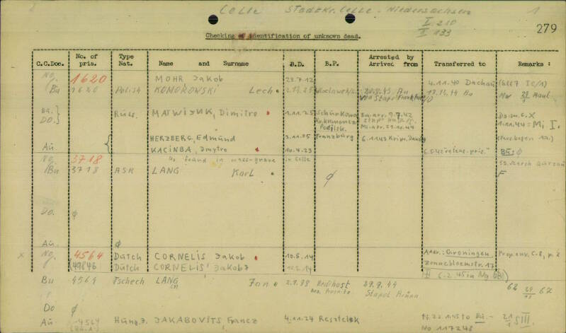 - 22-06-1944 gearresteerd en naar Hoofdbureau van Politie gebracht, vandaar naar Kamp Amersfoort en daarna op transport naar Kamp Neuengamme.